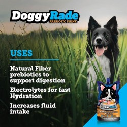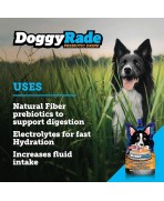 În situații precum efortul intens, zile călduroase de vară, consumul zilnic de apă nu le asigură întotdeauna necesarul de electroliți și vitamine. DoggyRade este concepută special pentru a ajuta la hidratarea optimă a animalelor de companie și pentru a ajuta la îmbunătățirea digestiei datorită prebioticelor din componență, favorizând totodată și absorbția nutrienților.