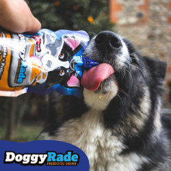 DoggyRade este o băutură multifuncțională pentru câini ce ajută la menținerea sănătății optime prin conținutul de prebiotice, electroliți și aminoacizi benefici.