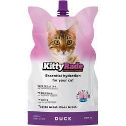 KittyRade este o băutură multifuncțională concepută special pentru pisici îmbogățită cu prebiotice, electroliți și aminoacizi esențiali. Ajută digestia, încurajând în același timp o hidratare fiabilă, hrănind și promovând un intestin sănătos.