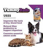 Hrana uscată pentru animalele de companie nu are, adesea, enzimele digestive care se gasesc în alimentele crude. O dietă predominant uscată poate, de asemenea, sa streseze rinichii din cauza lipsei sale de umiditate. YummyRade este un potențiator pentru imbunătățirea gustului meselor dar are și beneficii suplimentare prin conținutul de prebiotice ce ajută la sănătatea intestinală.